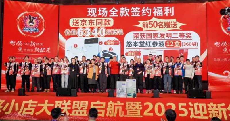 在会议上,兔悠平台发布了“抱团发展霸王政策”,传统小店仅需支付6300元,即可获得价值20万元的设备和服务,包括免费提供无人便利设备,助力小店实现规模化升级。现场,数十家传统小店纷纷签约,坚定决心共赴新征程,标志着兔悠在蛇年开启了规模化发展的新篇章。