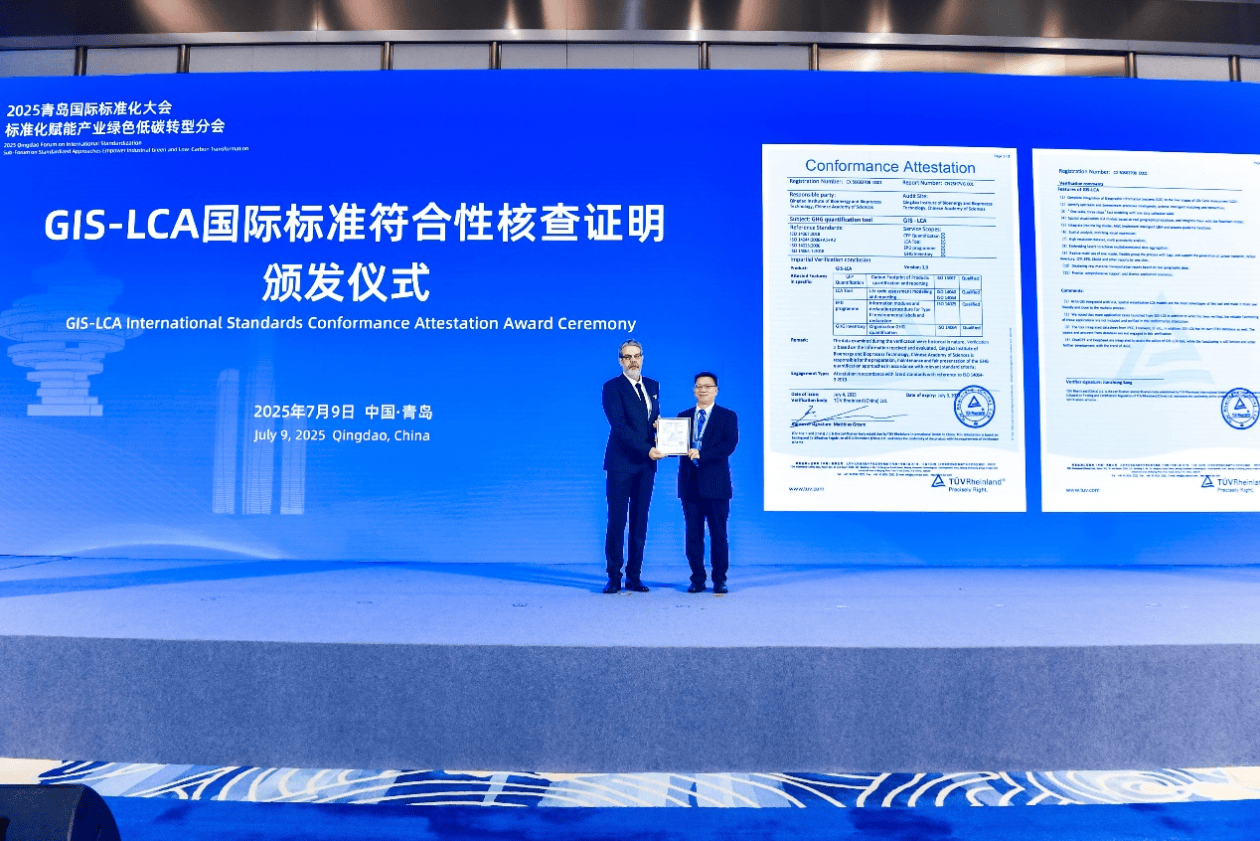 7月9日,中国科学院青岛生物能源与过程研究所田亚峻研究员团队研发的全球首创GIS-LCA软件正式获得德国莱茵TÜV集团颁发的国际标准符合性核查证明(注册编号:CX 50683708 0001)。这张由全球顶尖认证机构背书的证书,标志着中国原创的GIS-LCA技术和软件首获国际认可。该技术通过融合地理信息系统与生命周期评价方法论,成功破解了传统碳核算中无法精准量化空间异质性差异的世界性难题,为"中国制造"突破碳边境机制等绿色贸易壁垒提供了核心工具支撑。
