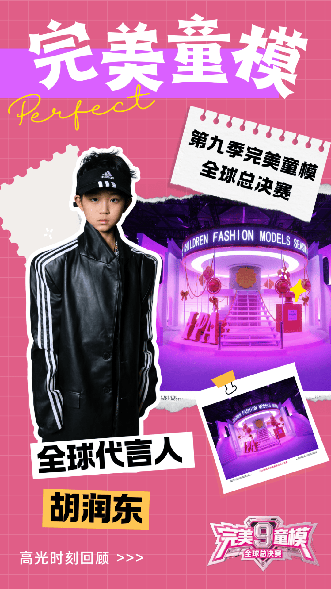 第九季完美童模全球总决赛的璀璨舞台,记录了一个个小小梦想扬帆起航的瞬间。而在众多光芒四射的小嘉宾中,胡润东 以其独特魅力与稳健的台风,在T台和镜头前留下了令人难忘的惊艳足迹。