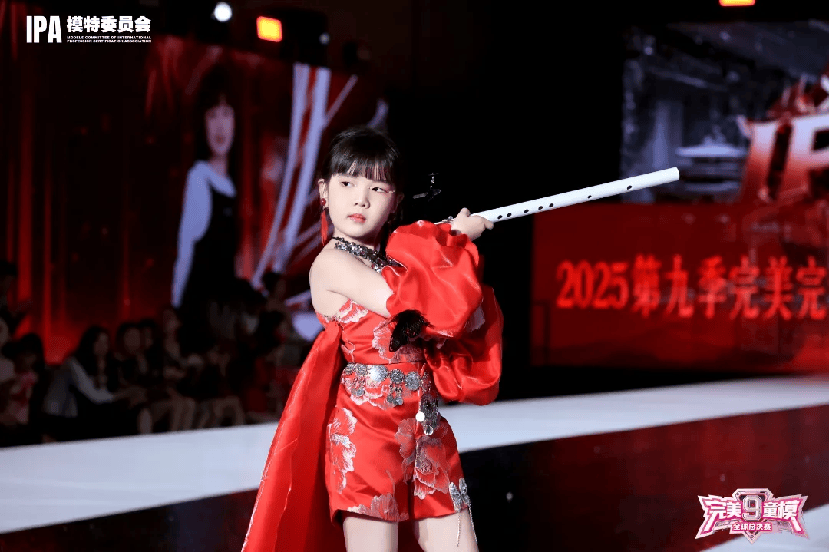 在樱歌令舞台上,她化身国风小侠女,气场拉满。手持长笛道具,眼神坚定又透着灵动,似藏着江湖故事。步伐稳健带风,转身、挥袖间,把侠骨柔情揉进动作里,长笛扬起的弧度、衣袂飘动的节奏,都精准踩住国风韵律,将传统意境与舞台张力融合,让观众仿若踏入古意江湖,被这股童真又飒爽的侠气狠狠拿捏 。一袭红装超吸睛,绸缎面料映着光泽,银色刺绣龙纹添贵气,单侧大袖设计打破常规,飘逸又带侠味。抹胸剪裁露出利落肩线,红绸拖尾随步伐轻摆,配上精致颈饰,传统与时尚碰撞,把 “樱歌令” 的国风主题穿在身上,活脱脱从水墨丹青走出的小侠客,造型适配度直接拉满 。
