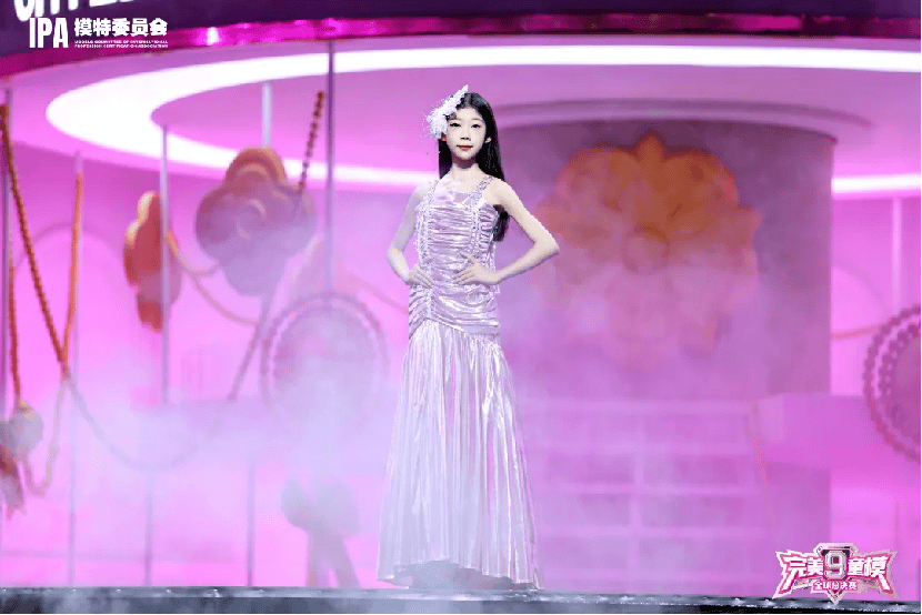 在第九季完美童模全球总决赛颁奖典礼现场,璀璨灯光聚焦舞台。张艺馨身着闪耀套装,头戴皇冠,身披银色披风,手持奖杯与证书,自信而夺目。整个赛程中,小嘉宾们在不同主题环节绽放光芒,展现了对时尚的独特理解与对梦想的不懈追求,诠释了第九季完美童模的主题。