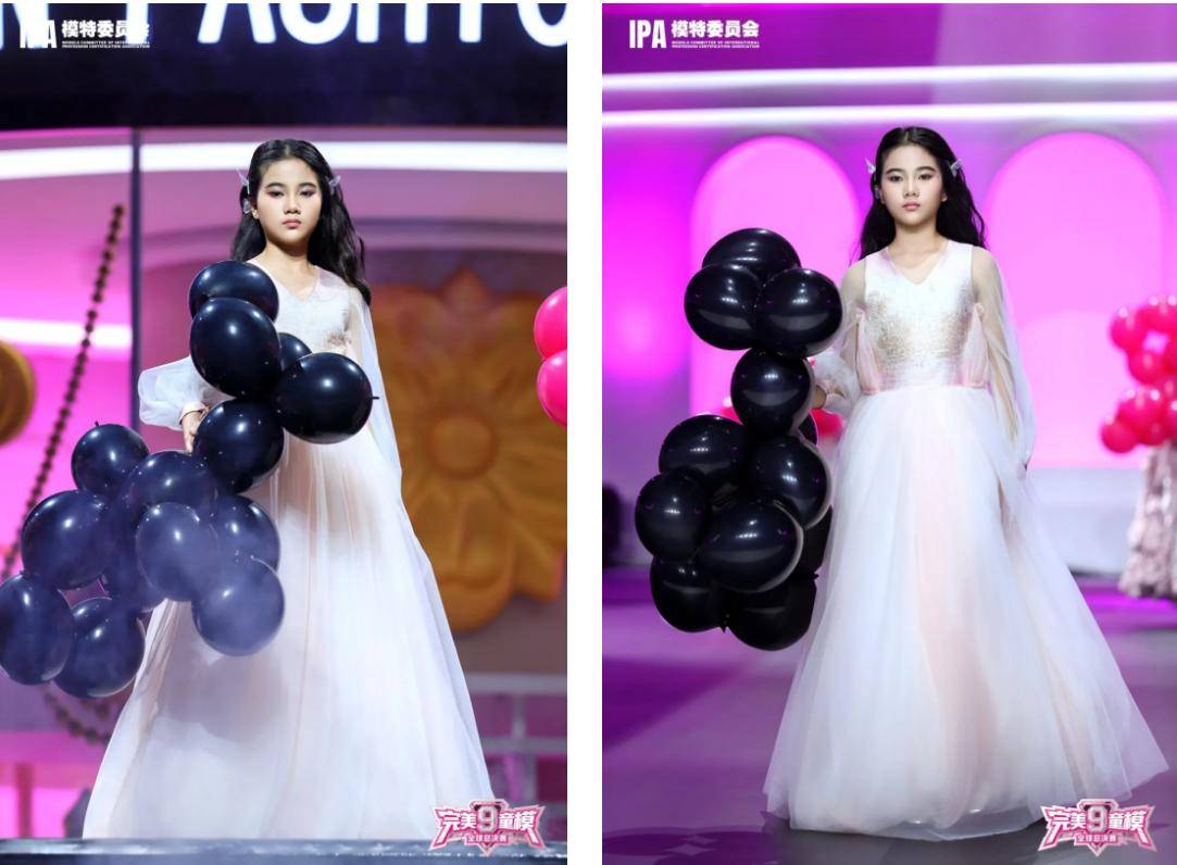 开幕式舞台上,米淇米宛如梦幻精灵降临。她身着一袭轻盈飘逸的纱裙,淡雅的色调仿佛云端的温柔色泽,精致的上衣闪烁着细碎光芒,似星辰洒落。宽大的纱袖如云雾缭绕,为整体造型增添了几分灵动与仙气。手中的黑色气球造型独特,与纯洁的白裙形成鲜明对比,既彰显个性又不失优雅。她步伐从容,眼神坚定且自信,每一步都仿佛踏在时尚的节奏上,将童真与时尚完美融合。在这绚丽的舞台上,她用自己的方式诠释着童模的魅力,在时尚的天际留下属于自己的独特轨迹,吸引着众人的目光,也为这场盛会拉开了精彩的序幕。