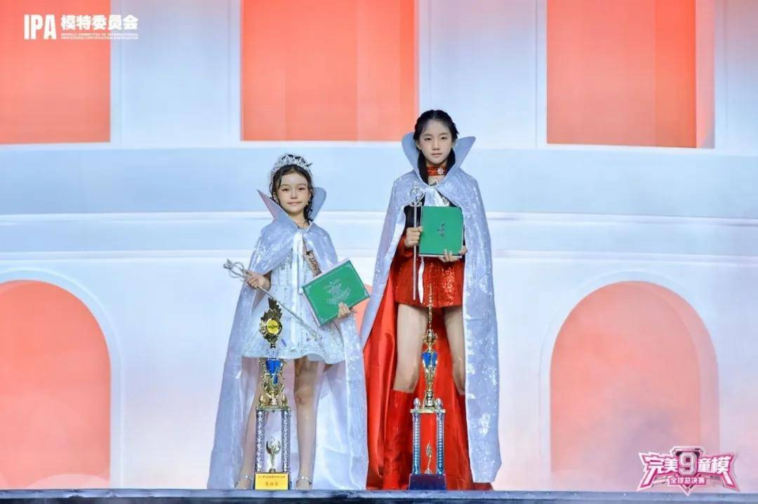 在第九季完美童模全球总决赛颁奖典礼现场,璀璨灯光聚焦舞台。汪美希身着闪耀套装,头戴皇冠,身披银色披风,手持奖杯与证书,自信而夺目。整个赛程中,小嘉宾们在不同主题环节绽放光芒,展现了对时尚的独特理解与对梦想的不懈追求,诠释了第九季完美童模的主题。