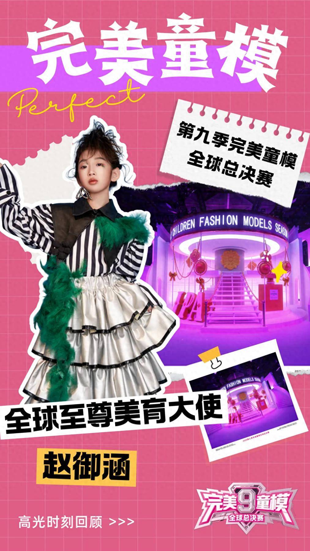 第九季完美童模全球总决赛的璀璨舞台,记录了一个个小小梦想扬帆起航的瞬间。而在众多光芒四射的小嘉宾中,赵御涵以其独特魅力与稳健的台风,在T台和镜头前留下了令人难忘的惊艳足迹。