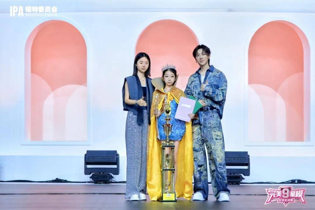 在第九季完美童模全球总决赛颁奖典礼现场,璀璨灯光聚焦舞台。赵御涵身着闪耀套装,头戴皇冠,身披银色披风,手持奖杯与证书,自信而夺目。整个赛程中,小嘉宾们在不同主题环节绽放光芒,展现了对时尚的独特理解与对梦想的不懈追求,诠释了第九季完美童模的主题。