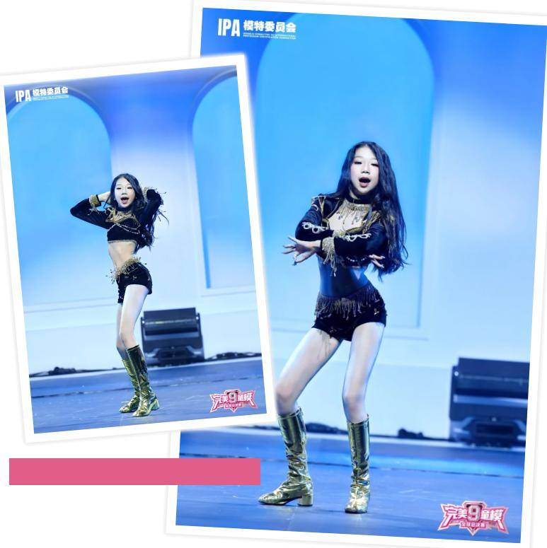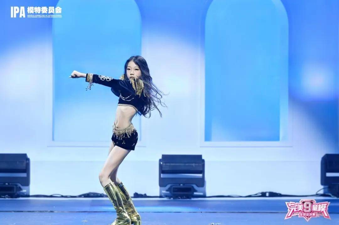 个人才艺节目展示中,赵御涵带来了一场热力四射的爵士舞蹈展示。她身着一套极具个性的爵士舞服装。黑色短上衣搭配同色系短裤,勾勒出灵动身姿,尽显活力与动感。上衣和短裤边缘装饰着金色链条与流苏,随着她的舞动肆意摇曳,为整体造型增添了华丽与时尚之感。脚上一双闪亮的金色长筒靴,不仅提升气场,更在舞台灯光下熠熠生辉。赵御涵的长发自然垂落,随着舞蹈动作肆意飞扬。音乐响起,她瞬间进入状态,身体随着节奏自由舞动。动作充满力量与韵律,每一个眼神、每一次转身都散发着自信魅力。扎实的舞蹈功底展露无遗。