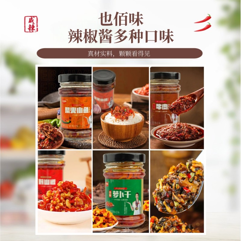 在品牌内核的塑造上,也佰味以“酱承百味”为理念,将“匠心、正宗、健康”深植于品牌基因。“也”字承载着对自然本真与手工匠心的坚守,品牌团队深入江西乡村,挖掘整理濒临失传的传统制酱秘方,从辣椒配比到香料选择都力求还原老江西的地道风味;“佰味”则代表着对多元风味的探索,推出蒜蓉野山椒、牛肉辣酱、柴火小鱼油辣椒等多款产品,固形物含量超55%的扎实品质,让其成为拌面、拌饭、烹饪的百搭之选。作为非物质文化重点示范品牌,也佰味更打破“非遗=陈旧”的认知,通过工艺优化平衡风味与健康,让传统辣酱适配现代饮食需求。