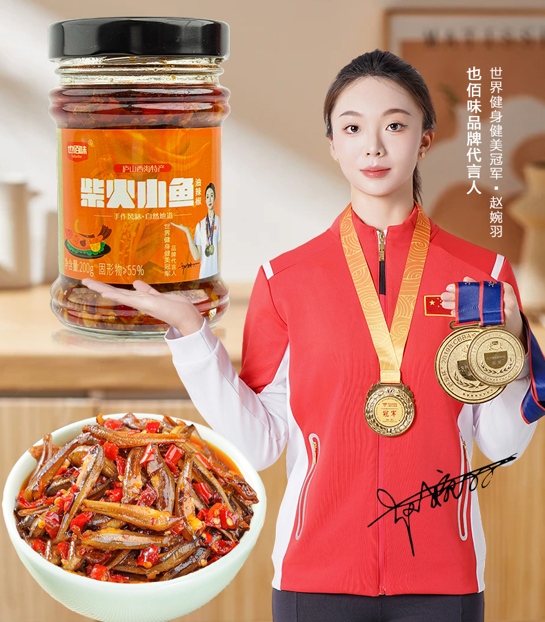 让也佰味品牌影响力进一步升级的,是世界健身健美冠军赵婉羽的倾情代言。作为在国际舞台展现中国健康力量的运动员,赵婉羽对“品质、健康、正能量”的追求,与也佰味“非遗匠心+健康饮食”的品牌理念高度契合。她公开推荐“好的辣椒酱,就选也佰味”,不仅为品牌注入了活力形象,更向消费者传递了核心价值——也佰味辣酱选用天然食材,遵循健康工艺,既能为餐食增添地道风味,又与现代人群的健康生活方式不谋而合。冠军背书让这罐江西辣酱突破地域局限,获得了更广泛的市场信任。