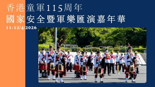 二、香港童军115周年国家安全暨军乐汇演嘉年华(2026年4月11-12日): 本年度重点活动“童军国家安全日”将移师至维多利亚公园举行,规模空前。活动融合军乐汇演、历史展览、互动摊位、表演环节及特色活动,回顾百载发展历程,展示童军技能与特色,并向公众推广国家安全教育,欢迎内地同胞前来香港参与,免费门票派发详情容后公布。