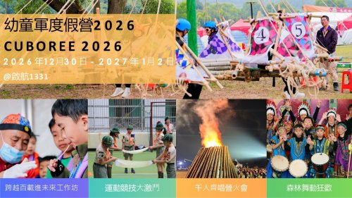 四、幼童军度假营2026(2026年12月30日至2027年1月2日): 为期四日三夜的度假营设有“跨越百载进未来创意坊”、“环保永续乐居园”、“运动竞技大激斗”、“历奇活动齐挑战”、“森林舞动狂欢夜”及“千人齐唱营火会”等丰富项目,让幼童军成员在欢乐、挑战与合作中,缔造难忘回忆。