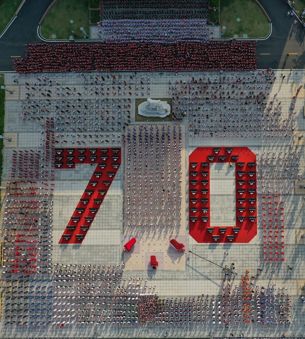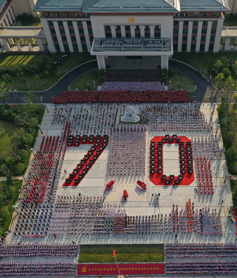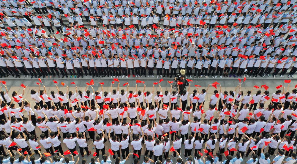 2019年9月8日下午,江西省弋阳县组织近万名党员干部、学生、群众、红十军后人代表,在方志敏干部学院举行《我爱你中国》大合唱,同时开展传送国旗并举行诵读《可爱的中国》节选活动,以此来展示弋阳老区人民的精神面貌,用以庆祝新中国成立70周年和纪念方志敏诞辰120周年。(艾世民发自江西弋阳)