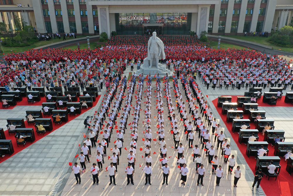 江西省弋阳县组织近万名党员干部、学生、群众、红十军后人代表,在方志敏干部学院举行《我爱你中国》大合唱